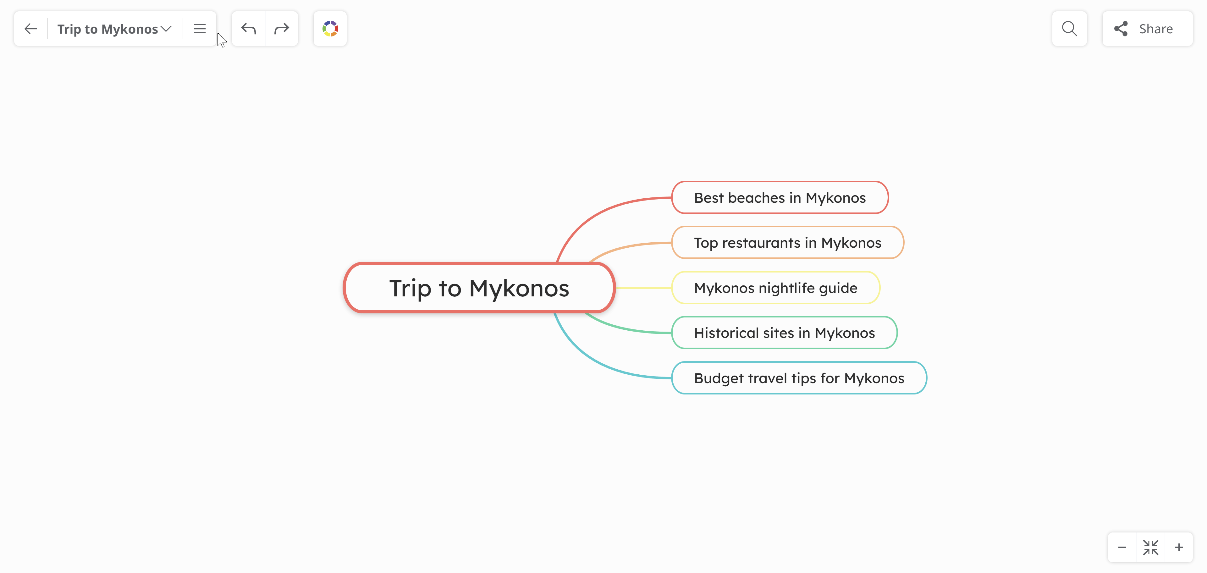 You can choose the AI Language in which you want to expand your diagrams. For instance, you might start with a topic in English (such as Trip to Mykonos) and then expand the diagram into any other language you choose. You have the option to leave the default setting: Auto detect which automatically identifies the language of the topic and generates results accordingly.