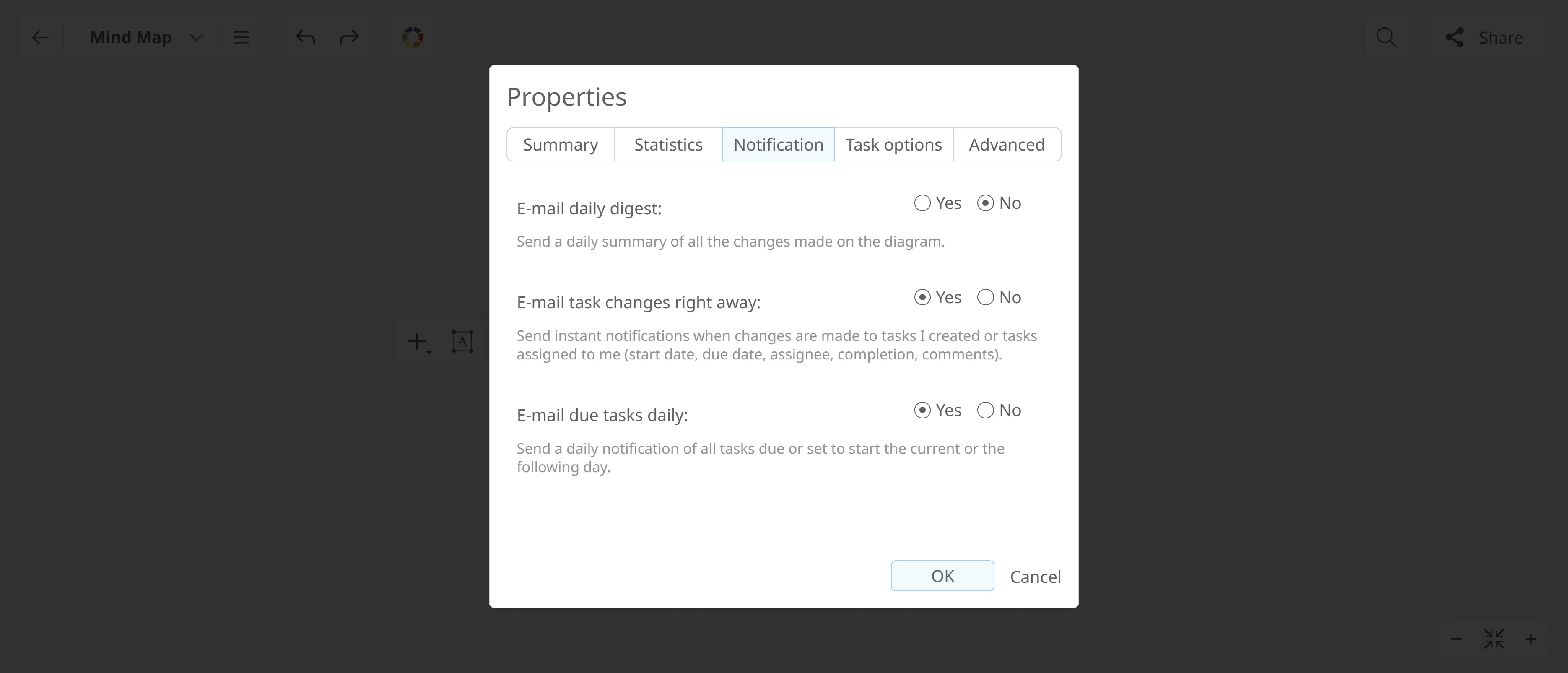 2. E-mail task changes right away: Sends notifications when tasks within the diagram are changed. This includes updates to: