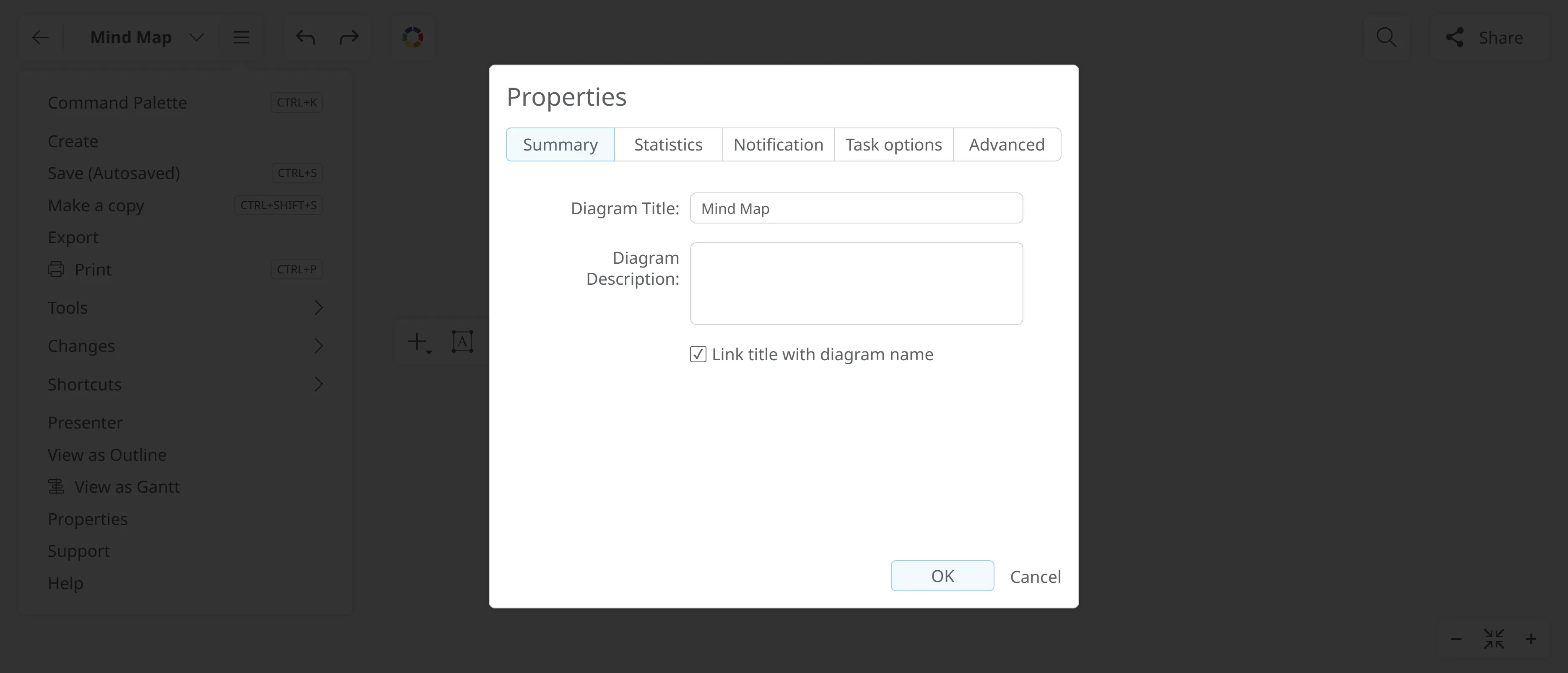 Link title with diagram name (checkbox): When checked, the diagram’s title is automatically synchronized with its file or diagram name.