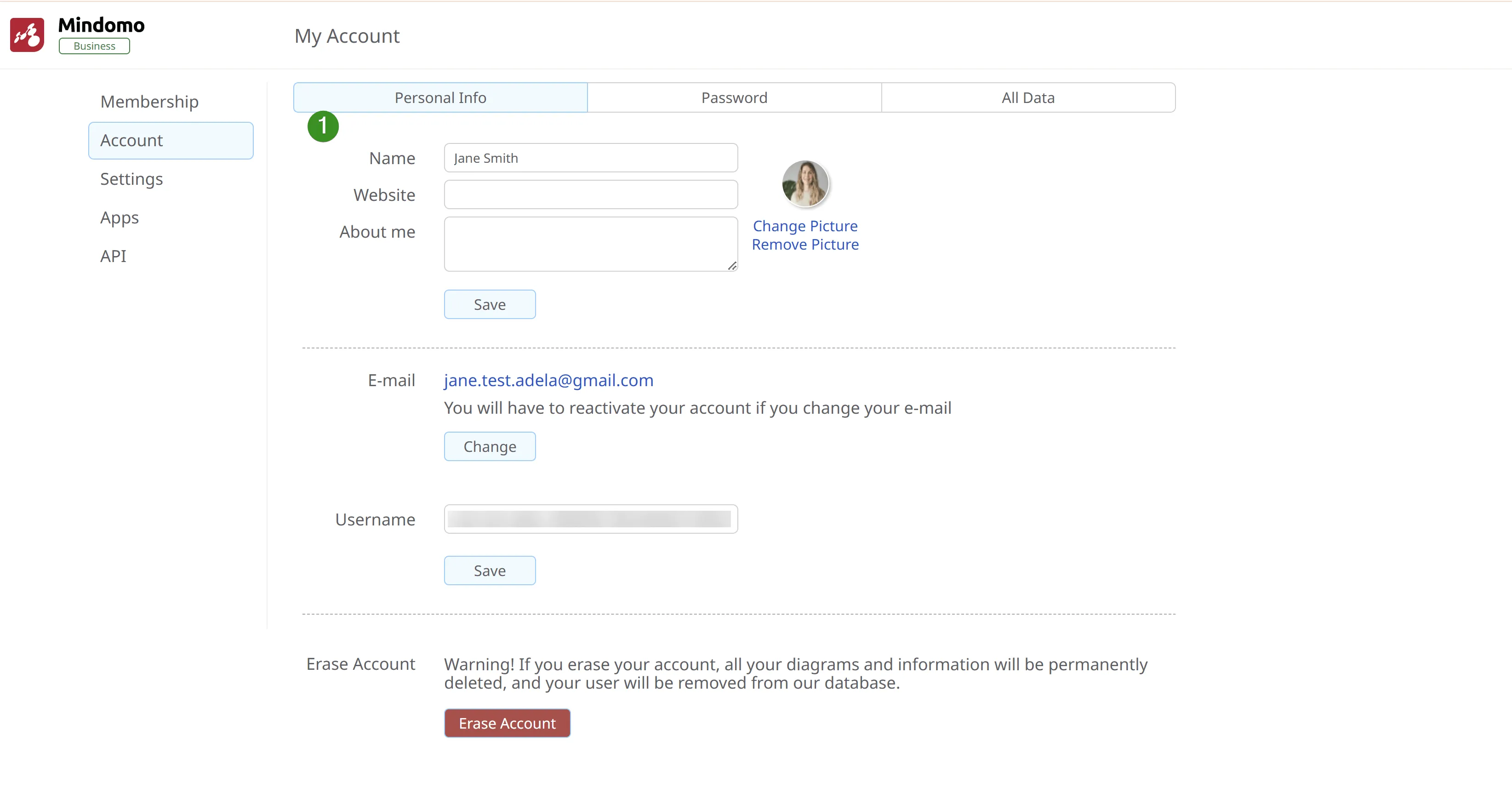 Section titled “Erase my Account”To delete your account, click on your initials/picture from your Dashboard, then below on your name, and access the ‘Account’ panel. From the left side, go to the ‘Account’ section, go to the ‘Personal Info’ tab, and click on ‘Erase Account’.