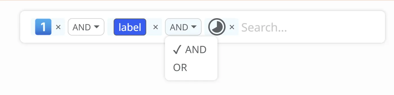 You can apply multiple filters and choose how results are shown, with the AND/OR option determining whether items must match all filters (AND) or any one of them (OR).